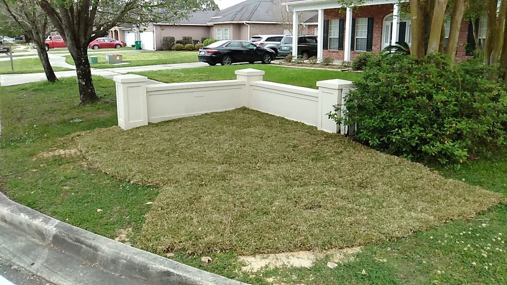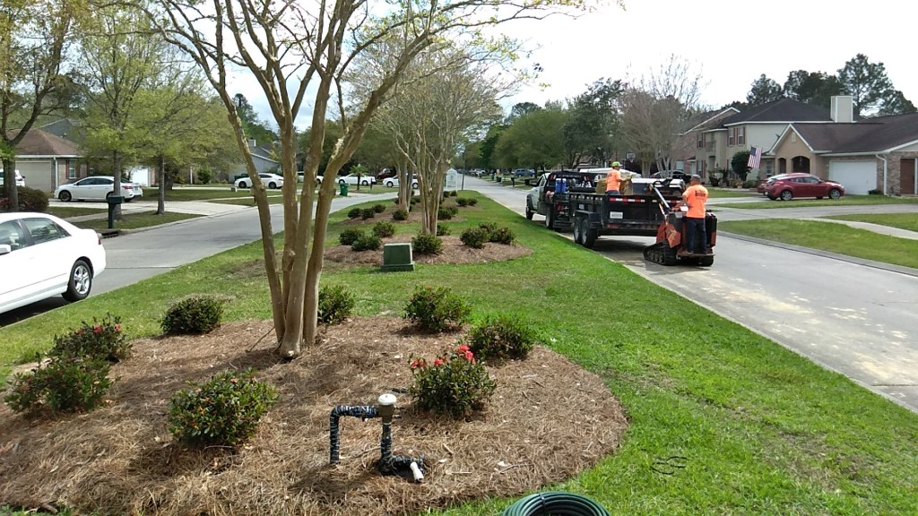 It was around late February of 2020 when we finally got this project off the ground. I wish I had the foresight to have taken photos of the heavy equipment used to remove the bushes and debris. The azaleas, half of them were huge and in many cases were dying and over twenty-three years old. They were a maintenance pain in the butt and we could not keep then looking like they did back in the day. Anyway, it was a big job getting them out of there, let me tell you. Then on top of that, they accidentally busted the a waterline that no one seemed to know where it originated from including the City of Slidell. Well that caused even more delays.